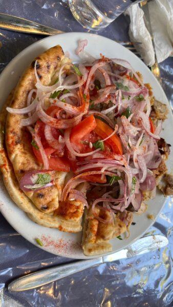 At almost all of the outdoor venues in which we dined, it was common (and yes, expected) for a big ole sweet dog to sit peacefully in a nearby corner and wait patiently until someone (usually me!) would entice him over to your table with a scrap of meat, which he usually doublechecked to see if you really intended for him to have. Then he’d gently take it in his mouth and walk away to finish consuming it, as if he didn’t want to offend your delicate hooman sensibilities with his canine chewing. I was doubly impressed.